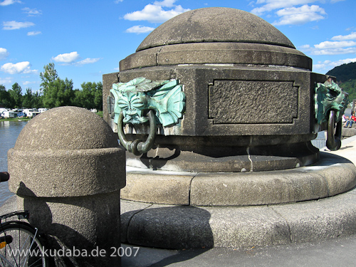 Das Reiterstandbild des Kaiser Wilhelm I. auf dem Deutschen Eck in Koblenz, Detailansicht der Uferbefestigung