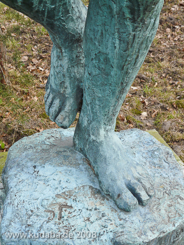 Bronzeskulptur “Dionysos” von Georg Kolbe im Kolbe-Hain in Westend, Berlin-Charlottenburg, Nachguss von 1962 aus der Bildgießerei Noack, Berlin, Detailansicht