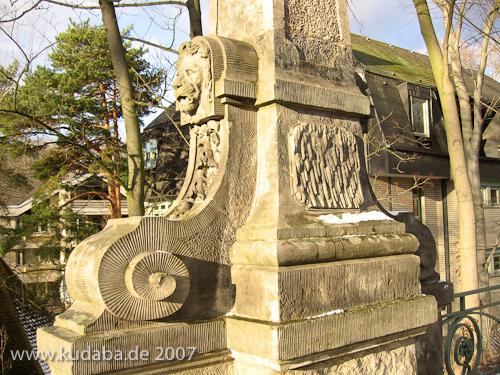 Bismarckbrücke in Grunewald, Berlin-Wilmersdorf, Detailansicht des Brückengeländers: Sandsteinskulptur