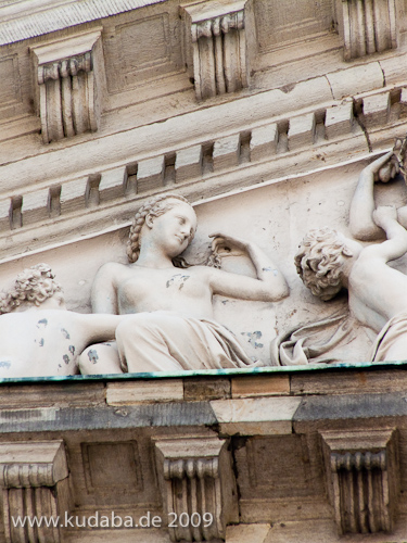 Giebelrelief an der Staatsoper Unter den Linden in Berlin-Mitte von Ernst Rietschel von 1844 (Zinkguss), Detailansicht