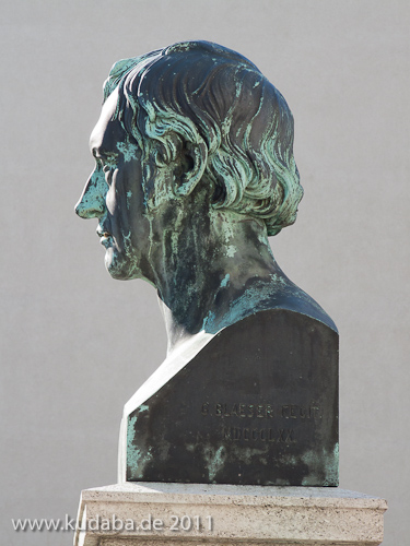 Hegel-Denkmal in Berlin-Mitte von Gustav Blaeser von 1870, Detailansicht von dem Porträt-Kopf