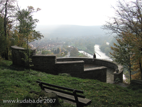 Blick über die Weserliedanlage herunter auf die Stadt Hann.-Münden