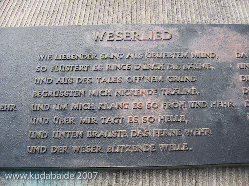 Weserliedanlage in Hann.-Münden, Detailansicht der Tafel mit dem Weserlied