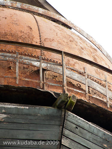 Wasserturm am Bahnhof Rathenow, Detailansicht von der Kuppel aus rostigem Eisen