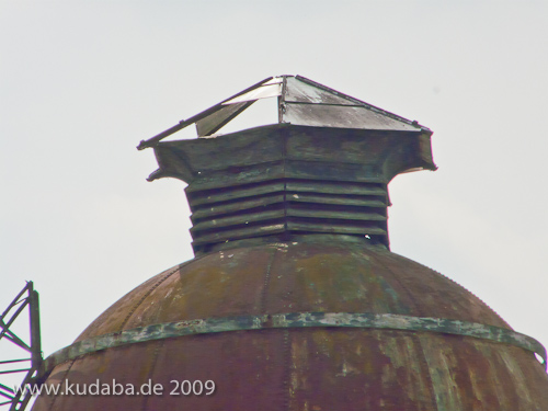 Wasserturm am Bahnhof Rathenow, Detailansicht von der Kuppel aus rostigem Eisen